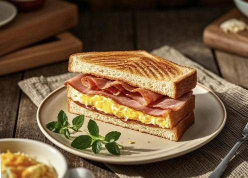 组合:·全麦面包/低碳吐司(2片,轻烤)·夹层:龙大美食培根片(2片)+ 低脂奶酪片(1片)+ 生菜+番茄·酱料:黄芥末酱(低卡替代蛋黄酱)特点:·蛋白质≈22g,适合外带,5分钟组装完成。·全麦面包提供慢碳,避免血糖骤升。