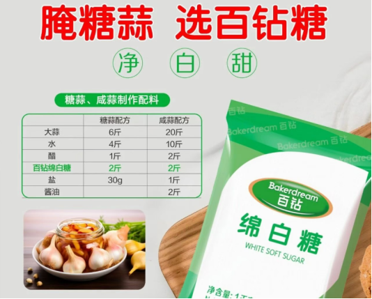 选择用百钻白冰糖制作腊八蒜,具有一定的提色作用,能让腊八蒜腌出来的色泽更翠绿更透亮好看。