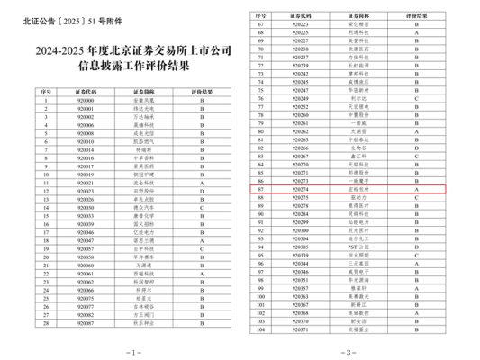 近日,北京证券交易所首次发布上市公司信息披露评价结果,湖北宏裕新型包材股份有限公司获A级评价。