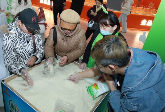 活动现场设置了试吃体验、徒手抓大米、盲盒抽奖、儿童绘画等多个互动区域,人气爆棚。试吃区里,热米饭、蛋筒大米、寿司等多种鲜米制品供消费者品尝,直观展现新米的优良质感;抓大米区域,消费者凭消费凭证参与“每满10元抓多少送多少”的趣味游戏,欢声笑语不断;盲盒抽奖区更是惊喜十足,买任意一袋大米即可参与,100%中奖率叠加黄金小马转运珠等重磅奖品,持续点燃现场热情。为让更多消费者享受到鲜米福利,本次活动同步推出优惠,福利力度拉满。